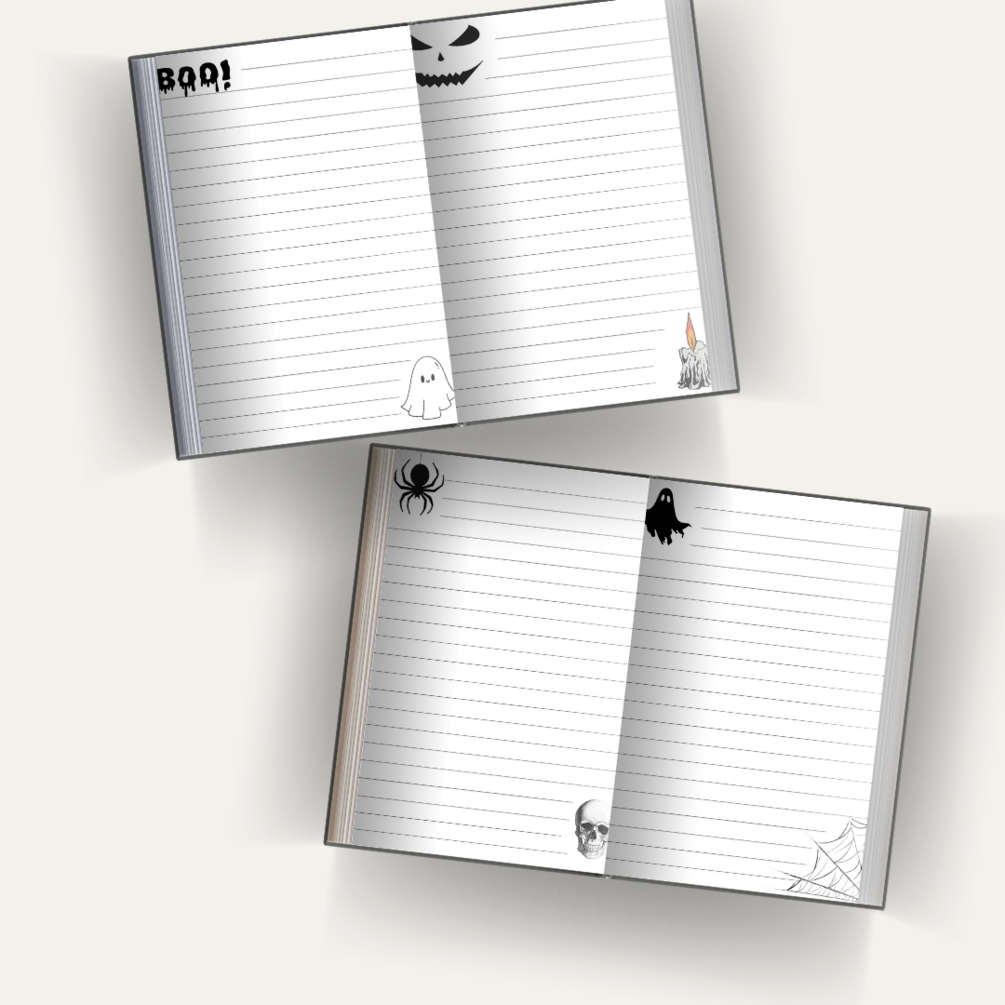 A stylish black & white notebook with cute spooky vibes — perfect for journaling, note-taking, and gifting.